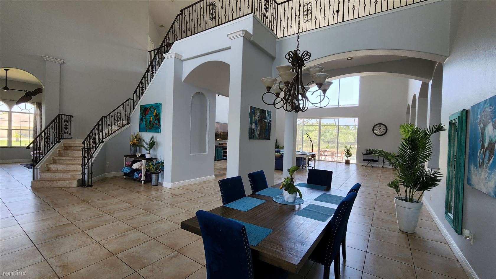 Enter this estate through the double glass doors with a two-story foyer and grand archways, tile throughout this beautiful home including in the oversized, two-story high dining room and great room and an inviting open concept and natural light. The spacious family room is complete with a gas fireplace, and sliders off pool area. The outdoor courtyard features a salt system/peppletech pool that the whole family can enjoy. This home offers an extremely private preserve and spring fed lake. There are bridle pat