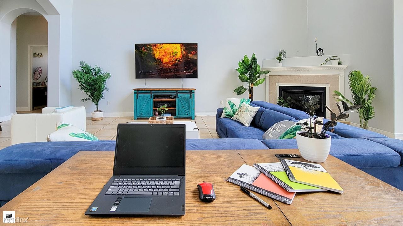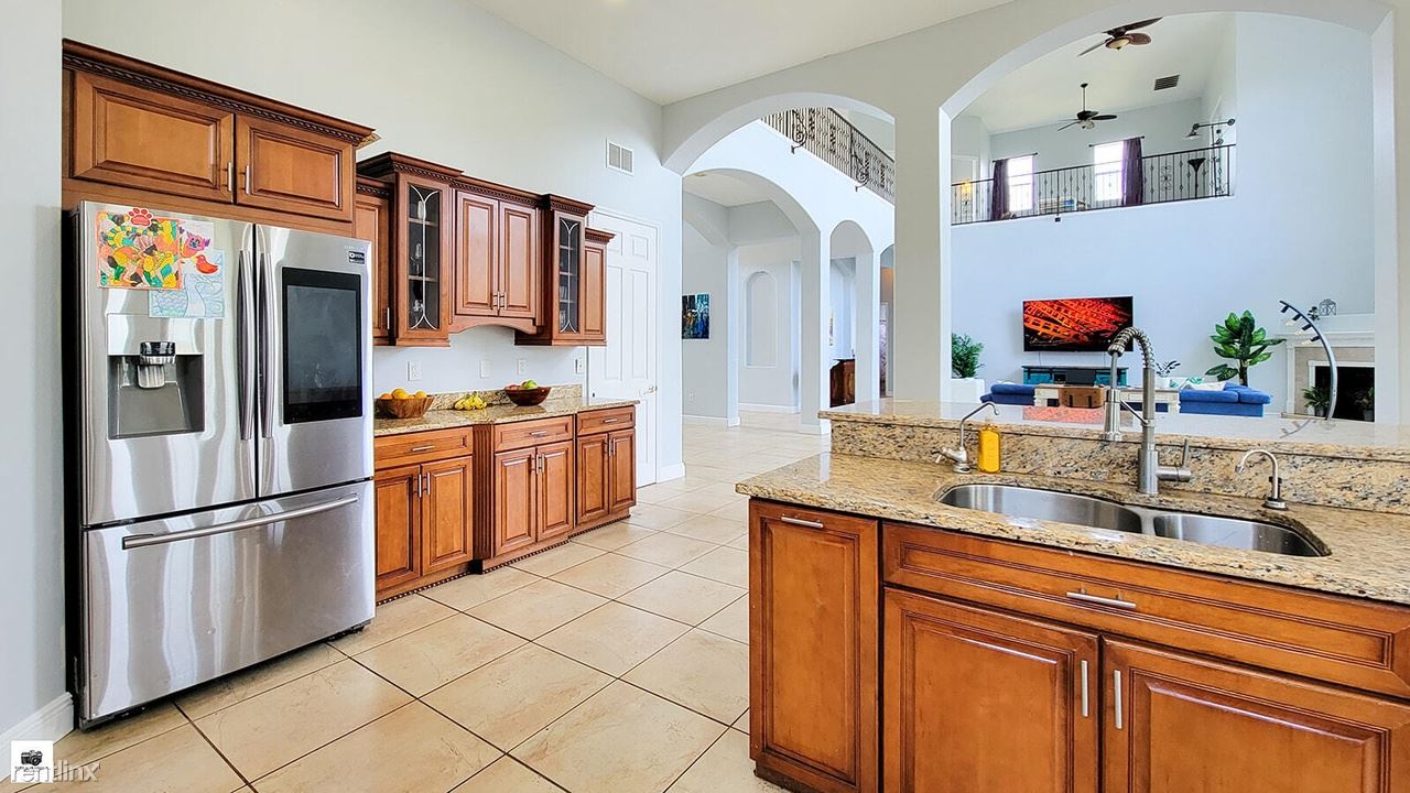 This amazing home spotlights an enormous great room with an open concept plan, 4 bedrooms, a flex room, a loft and 4 bathrooms. The extra downstairs room can be used as an office or den with panoramic views of the exquisite property. The upstairs loft is perfect for a children's play area with its unique lower view of the family room and kitchen. This freshly-painted home features magnificent ceilings, soaring 30ft high in the great room, smart thermometers controlled with a smartphone, new appliances, a gourmet kitchen cooktop, smart fridge. New roof installed in 2023.